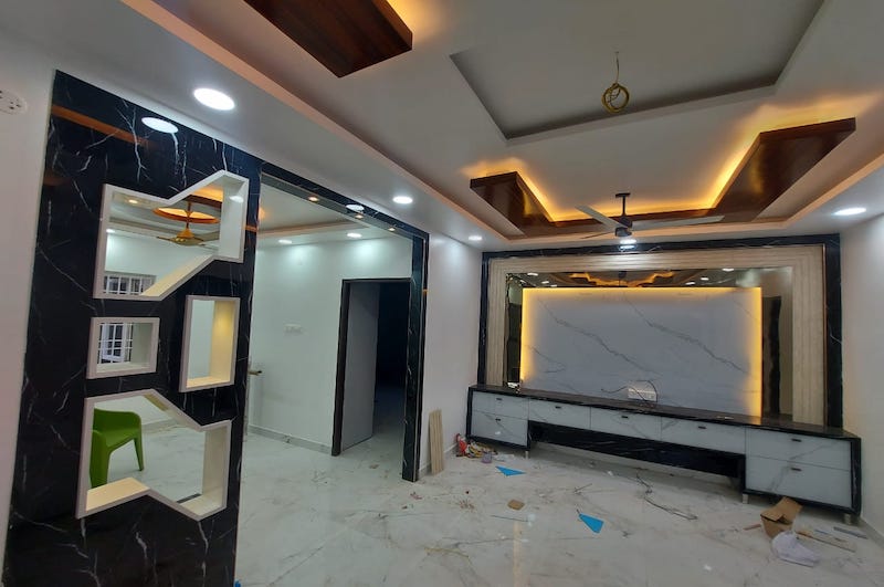 We Do All Kind Of Interior Work , False Celing, Electical Work, Plumbing, PU Painting, 3D panels, polymarble panelling, lights, wooden flooring, Tiles Installation, certains, modular sofa, bed headboard and cot, all kind floorings etc.,